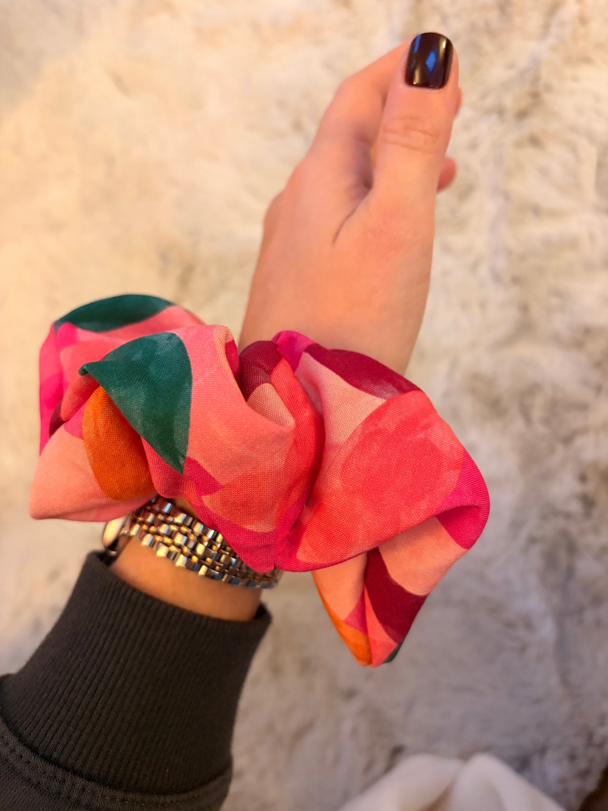 Découvrez le Chouchou Joséphine en viscose imprimée aux couleurs roses.