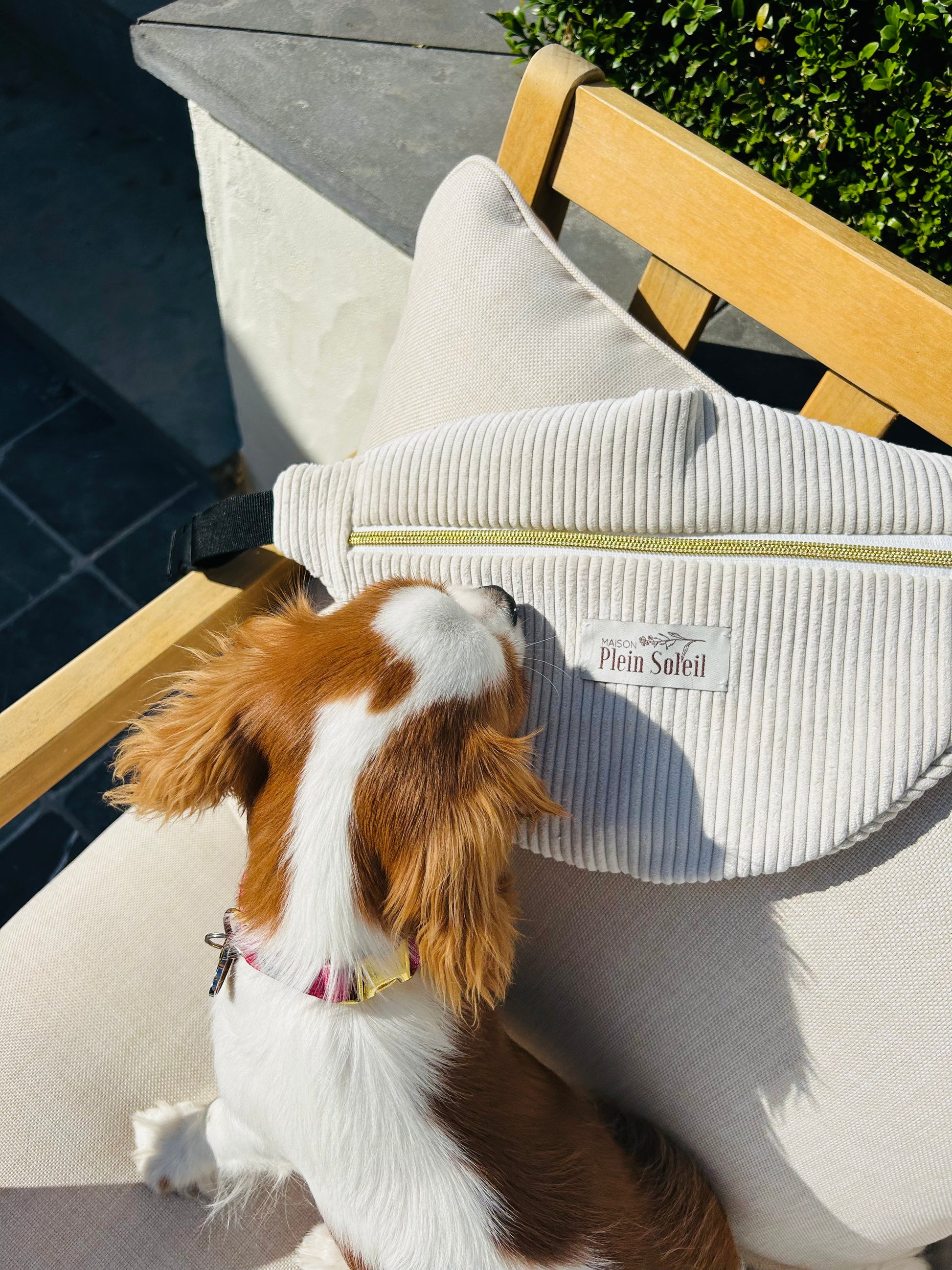Un sac banane de couleur beige clair en velours côtelé idéal pour la saison automnale.